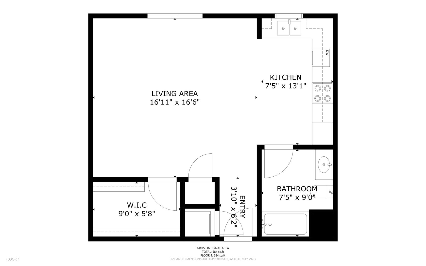 0 Bedroom/1 Bath Studio Apartment